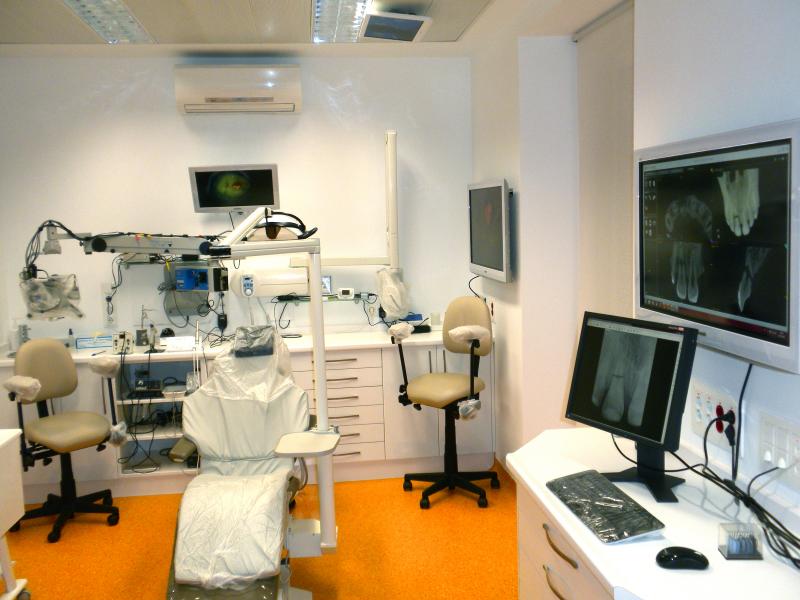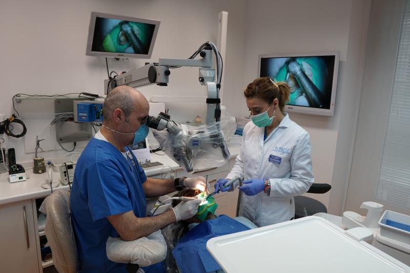 Microscopio Operatorio Quirúrgico: Debido al tamaño tan pequeño que poseen los conductos radiculares donde se albergan los nervios y vasos pulpares, el tratamiento de endodoncia es uno de los más complicados en odontología. El tratamiento a través de un microscopio quirúrgico permite aumentar hasta 32 veces el tamaño de la anatomía así como proyectar un luz intensa en el campo operatorio lo que permitirá visualizar el proceso de una manera altamente detallada, facilitando un tratamiento muy preciso. Después del Dr. B. Zabalegui de Bilbao, nuestra clínica es uno de los primeros centros dedicados exclusivamente a la especialidad de endodoncia en España en emplear estas técnicas de microendodoncia desde 1998.