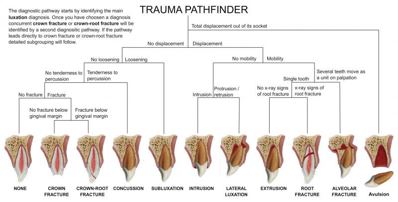 Guía perteneciente a la mejor web dedicada a traumatología dental del University Hospital of Copenhagen http://www.dentaltraumaguide.org/Trauma_Pathfinder.aspx